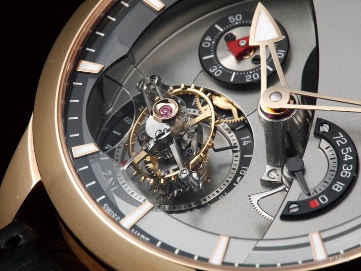 MikrotourbillonS的研發是從2011年九月開始的,到了隔年Baselworld時已經做出三款原型錶,同年十月左右正式發表,以現代製錶業的水準來說相當快速,遑論是這種難度的複雜功能了。