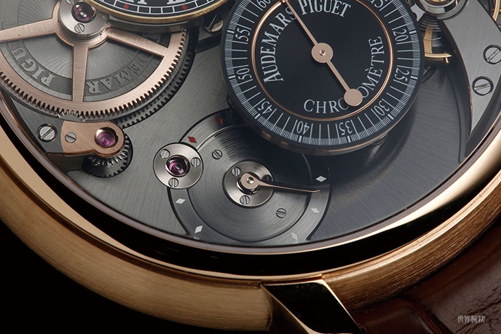 AUDEMARS PIGUET愛彼的AP Escapement算是目前主流品牌研發的「非瑞士槓桿器」當中少數持續有在發展的一家——說是發展但相關技術大致已經定型了,這裡指的是還有運用在新款上。這套擒縱系統最早出現在2006年的第五天王上頭,隔年沿用在摘掉了萬年曆的小天王、再來是2009年直接以愛彼獨家擒縱命名的這款AP Escapement(白K金版)、2011年的千禧三問錶,還有'14年在W&W首度曝光、'15年S.I.H.H.正式亮相的千禧小萬年曆,稱得上是一個頗具規模的家族。