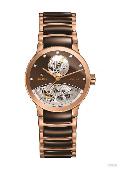 ▲雷達表晶萃系列(CENTRIX) Open Heart 巧克力色高科技陶瓷鏤空自動腕錶 R30248712