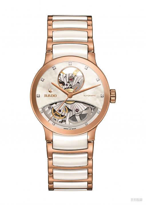 ▲雷達表晶萃系列(CENTRIX) Open Heart 白漾高科技陶瓷鏤空自動腕錶 R30248902
