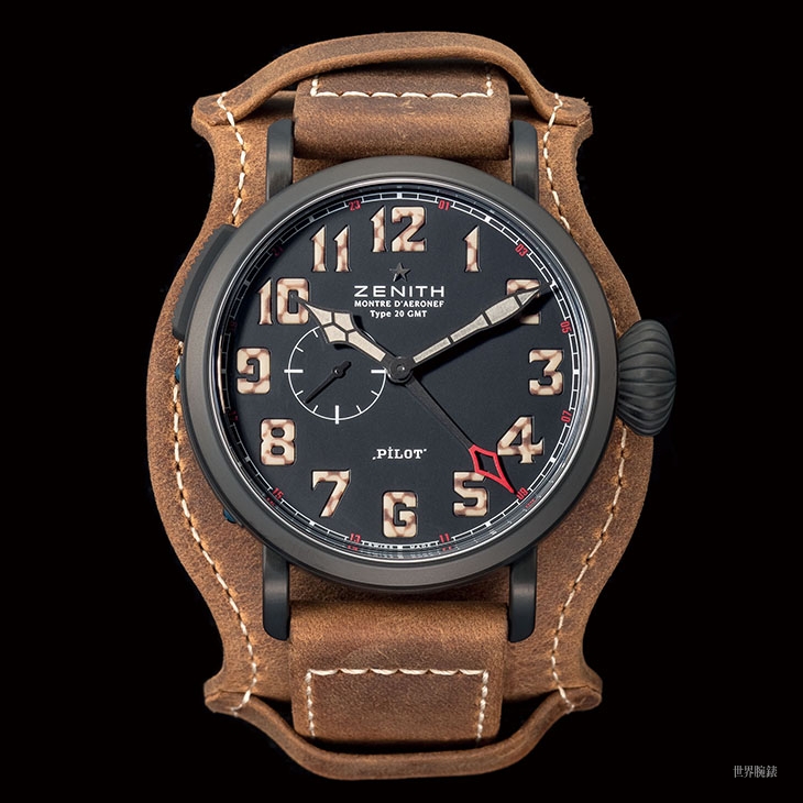 2014年ZENITH於Pilot系列再度推出兩地時間腕錶,保留大量早期飛行錶特徵的同時,品牌更嘗試在細節面上著手營造錶款猶如回到過去的復古質感,逼真揣摩出過往專業人士佩戴飛行錶的干雲豪氣。