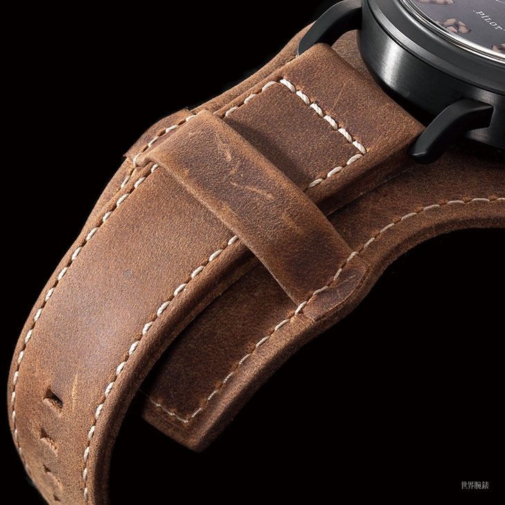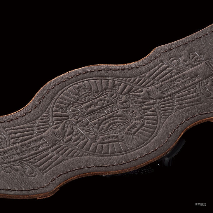 Pilot Montre d'Aéronef Type 20 GMT 1903採用雙層的可拆式錶帶設計,一來貼近早期飛行錶的設計形式,二來也可以提供佩戴者自由轉換不同模式的戴錶感受;此外值得一提的是,ZENITH在第二層錶帶的底部還饒富巧思的壓印上品牌Logo以及周邊精彩細緻的裝飾圖騰,佩戴者若覺得將之封藏於腕上稍感可惜,甚至也可將之拆卸下來作為一種擺飾欣賞也無不可,願意在這種小細節處下工夫,證明品牌製錶的用心。