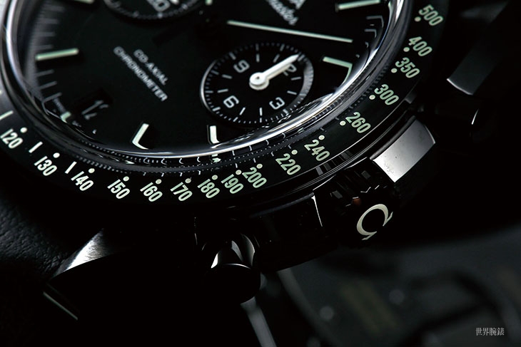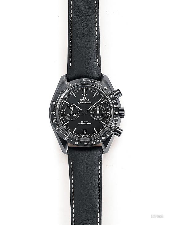 除了夜光的部分之外新款還將錶款整體的色調做了進一步的統一,原本的月之黑面上還有若干紅色點綴,如面盤上的Speedmaster字樣、計時秒針的尾端等等,這款則將這些地方也全都改成了灰階的,讓錶款的意象更形飽和。