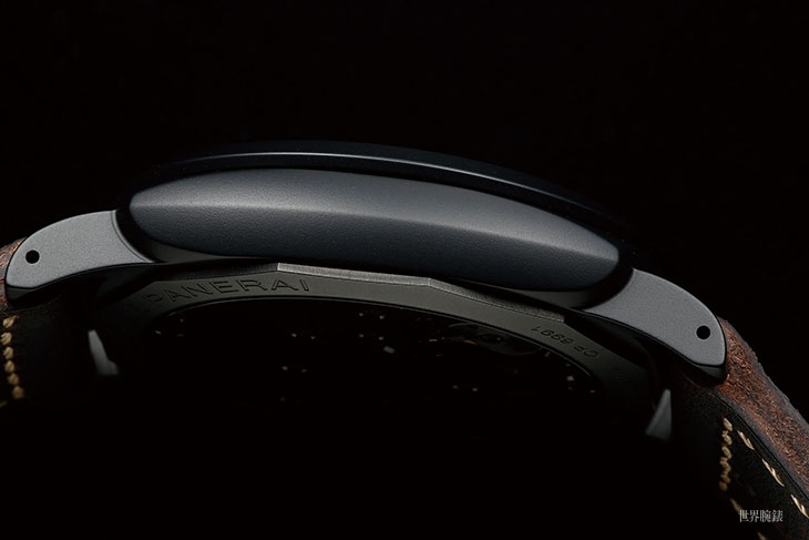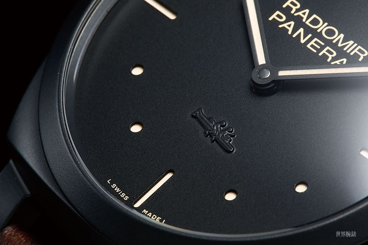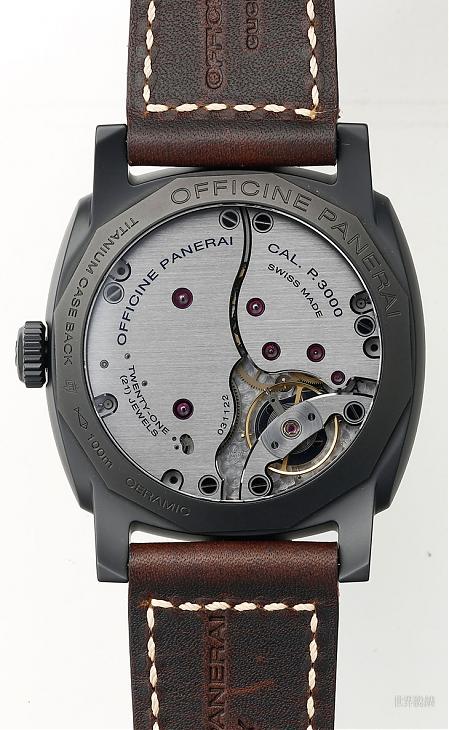 錶款以三明治面盤呈現2533 dial簡潔的樣式,盤面6點鐘有浮凸的S.L.C.慢速魚雷圖示;不論是Radiomir 1940還是2533面盤都是屬於復古路線的,因此指針和時標的夜光也是採用淡褐色的。錶殼採用了氧化鋯的陶瓷材質,all black的配色在這個組合上也很新鮮。錶殼尺寸來到48mm,一般亞洲玩家恐怕不容易駕馭,搭配巨大的錶殼,錶款搭載的也是大尺寸的P. 3000機芯,雙發條盒三日鍊,擺輪採用的也是橫跨式的擺輪錶橋,規格方面可以說是目前沛納海復古款是首選的機芯。