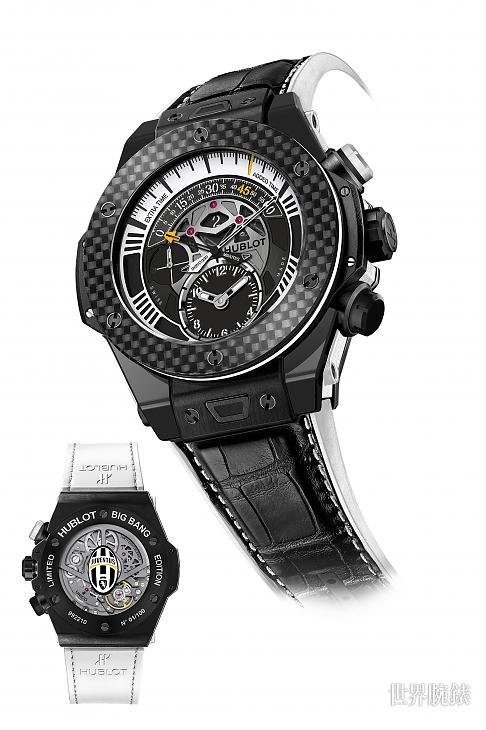 Hublot宇舶表以瑞士精巧製錶工藝,加上品牌馳名的「融合的藝術」,再貫注足球之魂,製成Big Bang Unico Bi-Retrograde Juventus雙逆跳計時碼錶。腕錶以祖雲達斯會徽別具一格的黑白雙色為設計意念,45毫米錶殼以黑色拋光緞面陶瓷製成,備有防反光藍寶石錶鏡,黑色橡膠配黑色鈦金屬錶冠,黑色鈦金屬配白色橡膠按鈕,錶盤、指針以至錶帶同樣貫徹黑白色主題,而錶背更加飾有祖雲達斯會徽。腕錶專為足球球賽計時而設,內藏 Hublot宇舶表自行研發、整合導柱輪的UNICO HUB1261自動上鏈雙逆跳計時機芯。腕錶既具備精密可靠的時計功能,又洋溢祖雲達斯的獨特設計元素。