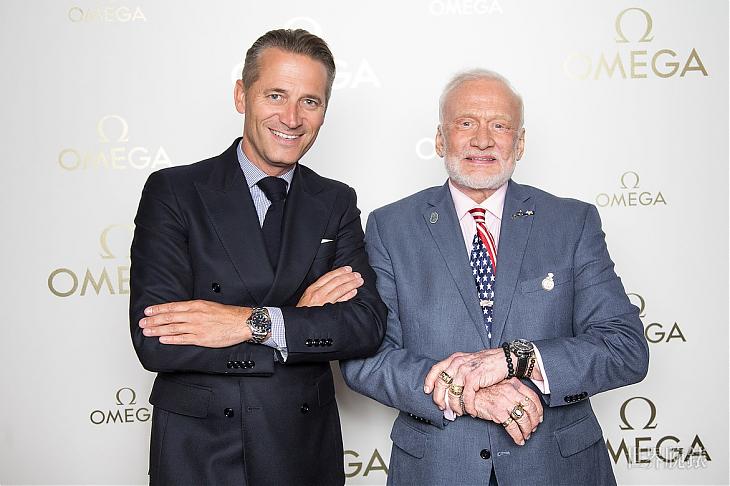 ▲歐米茄全球總裁兼首席執行官Raynald Aeschlimann與Buzz Aldrin