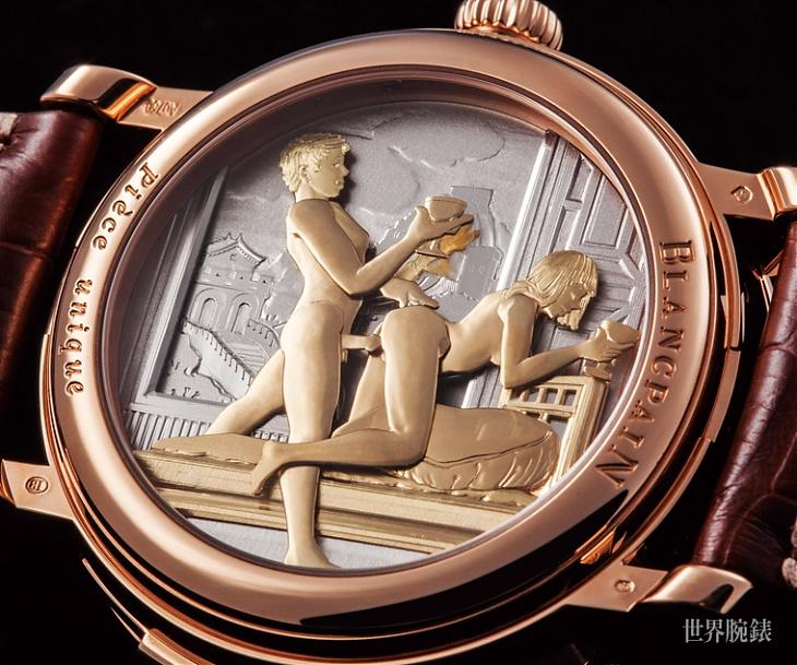 自從在2008年推出了別出心裁的飛行卡羅素,往後數年BLANCPAIN寶鉑積極地將它轉用於跟其他各式各樣的複雜功能做搭配;2010年他們結合了三問機芯推出了三問卡羅素的大複雜款式,之後不久又在其上加裝了春宮動偶,於是遂有了這次介紹的這款春宮三問卡羅素。