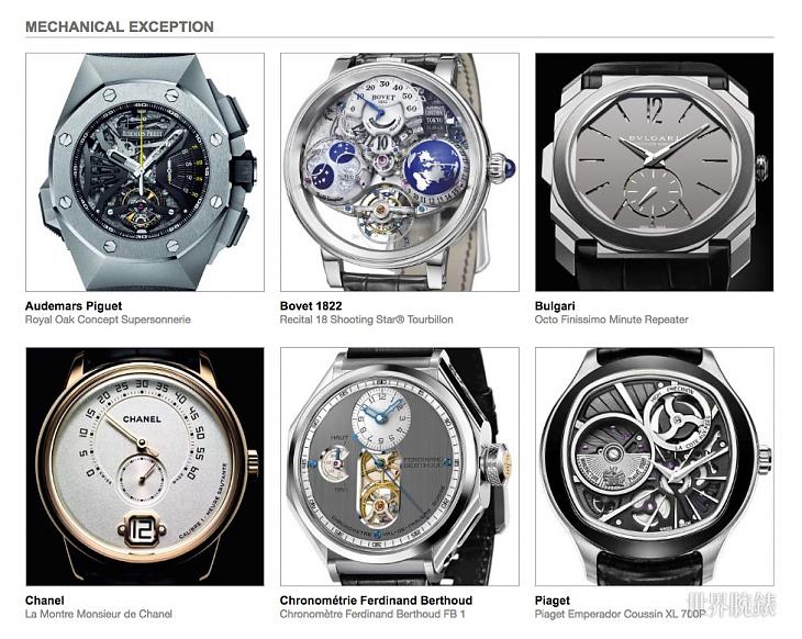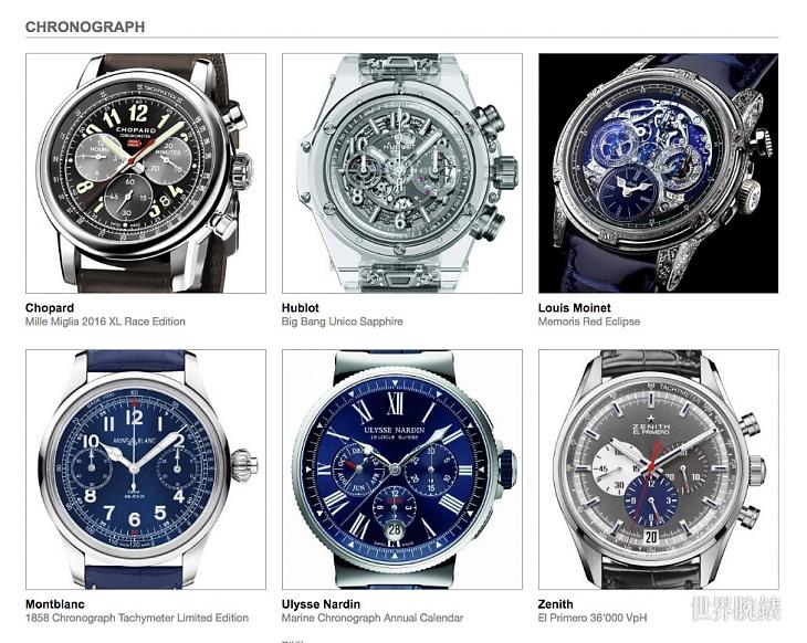 2016年日內瓦高級鐘錶大賞(GPHG)於9月1日公佈最終入圍時計名單,12類別(每類別6枚)共72枚時計入選,進入堪稱鐘錶界最高榮譽的「金指針獎」(Aiguille d'Or)角逐戰。本次入圍名單如下: