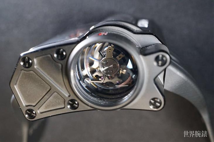 MP-07的錶背設置了一枚按壓式的調時按把,使佩戴者得以徒手進行時間調校,操作便利性更為提升。