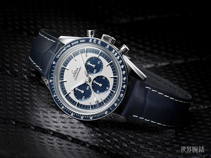 比較2016年這版和2012年的版本,新版有幾個明顯比較討喜的地方,首先它的配色採用了雙色面盤,三個子面盤和外圈刻度都採用了跟銀白色主面盤對比的藍色,搶眼之餘也更復古;這樣的配色比較接近賽車錶的風格,事實上超霸在以登月聞名之前原始的定位就是車賽用錶,這次的復刻也算是回歸初衷,而OMEGA這次在官方的宣傳中也不再特別強調它的太空淵源了,畢竟CK2998是從1959年開始販售的,當時OMEGA跟太空也還無甚淵源。