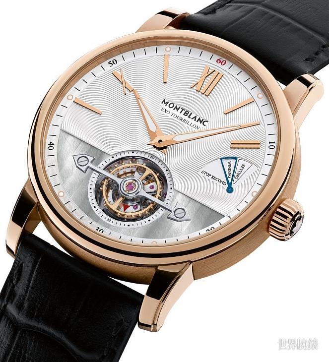 外置陀飛輪超薄腕錶/18K玫瑰金材質/MB 29.21自動上鍊機芯/時、分、小秒顯示/外置陀飛輪裝置/快速停秒裝置/錶冠位置顯示/藍寶石水晶鏡面、透明底蓋/防水50米/錶徑30.6mm