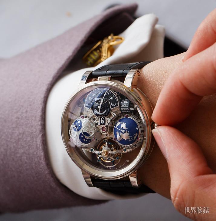 BOVET Récital 18 The Shooting Star®將人類自太古以來對星空的幻想具象化在腕間,穿越世界各地的城市,在地球上不斷移動,將世界地圖以三維立體的在腕錶上展示,每一次讀時都像閱讀立體書一樣的驚喜。