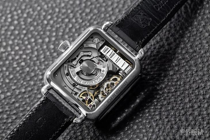 ▲錶背露出來自HAUTLENCE旗下的HL2.0機芯,具有微型自動盤以及雙發條盒提供45小時動力儲存空間,並以12節鍊條組成的小時顯示與鉸鍊式棘爪系統等設計元素打造出兼容傳統與現代的科技化機芯。