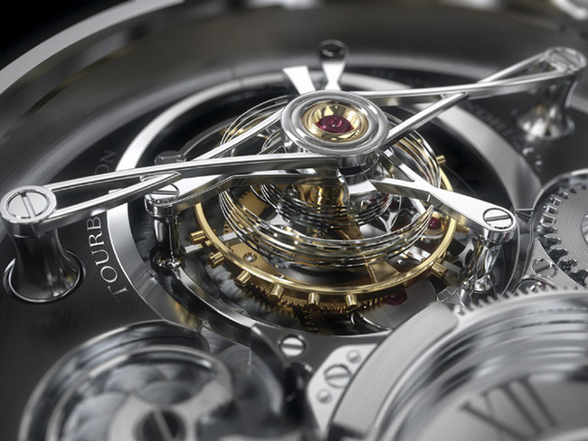 這次品牌能夠把圓柱型游絲擒縱結構縮小並移植至手錶的陀飛輪框架內,可說是極大的突破。傳統游絲與圓柱游絲雖然都是同心捲曲的彈性金屬圈線,但平游絲由圓心起向外卷,與圓心距離不斷加大,而圓柱游絲的圈線一圈一圈層層相疊形成圓柱體,每圈與圓心距離一致。 這種設計的好處在於它能夠消除傳統游絲出現的重心偏差。其次是每層圈線與圓心距離的一致及對稱,大大有利其收放運動的幅度及性能。