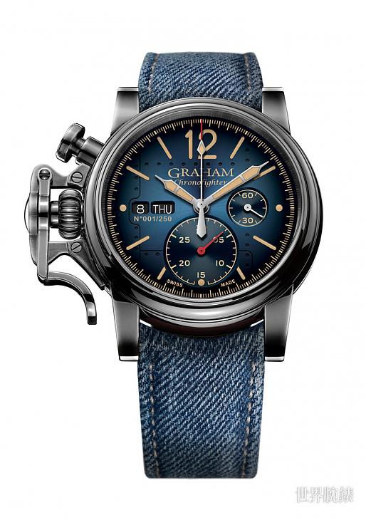 ▲2CVAV.U03A/不鏽鋼材質/G1747自動上鍊機芯/時、分、小秒、日期、星期顯示/計時碼錶功能/藍寶石水晶鏡面/防水100米/錶徑44mm/限量250只/藍色丹寧錶帶/參考價:NT$ 198,000