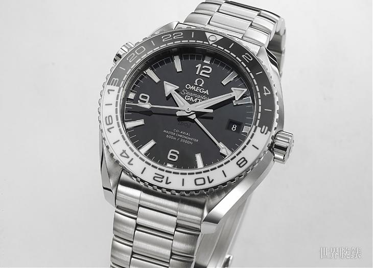 回過頭來看看錶款全體。這款的細部樣式套用的是2016年式Planet Ocean的新規設計,其中像是錶圈內緣的虛線、面盤外圈連線成「山」字型的刻度都是新的。錶圈的旋轉機能由於是對應到GMT所以是雙向旋轉,再加上上面的數字刻度是24小時制的時標,因此不太能當作潛水的計時錶圈來使用(但防水深度仍有600米)。