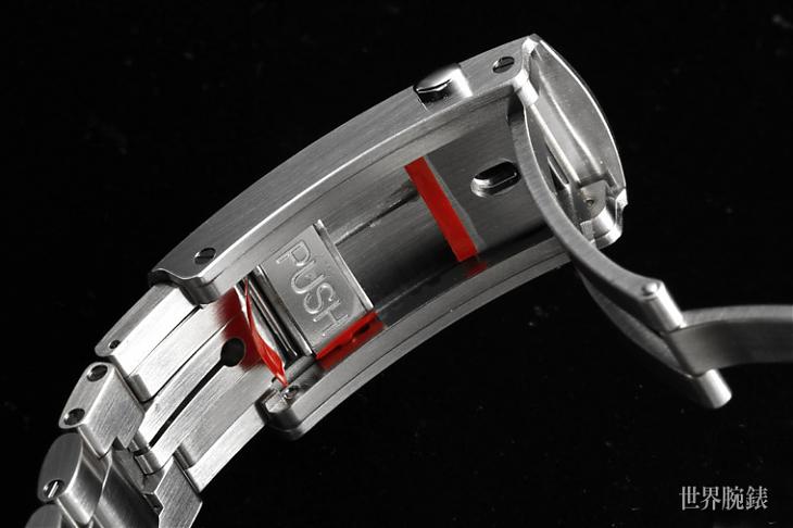 ▲錶帶有鍊帶和皮帶可選,其中皮帶是膠帶外鑲皮面的作法,不過由於兩種材質同色,乍看之下跟皮帶無異。鍊帶的錶扣內藏可延長的鍊節,現行OMEGA潛水錶的錶扣作工相當好,整塊金屬切削成型的厚重感十足。