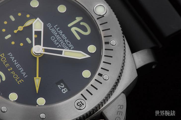 ▲錶圈的四點沒使用ESWN的方向標示有點可惜,取而代之的是一般潛水錶的分鐘標示;其實前面提到關於抗磁的問題,以沛納海近年的抗磁錶,把錶圈做成陶瓷的未嘗不是一種選項,不過這都是後話了。