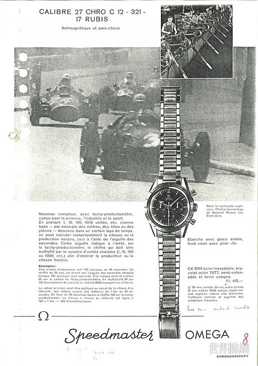 ▲從早期廣告中可以窺見Speedmaster系列最初是為了賽車運動而生的淵源,錶款的計時功能對於當時賽車選手而言確有實用價值。