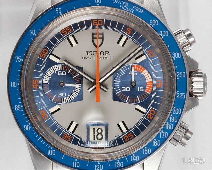 ▲現今錶壇的鮮豔撞色設計,早在1973年TUDOR所推出的Ref.7169/0就出現,如今雙眼藍色計時錶盤加上橙針的搭配,搭載珍貴的Valjoux 234手上鍊機芯,已成錶迷心中一大經典。