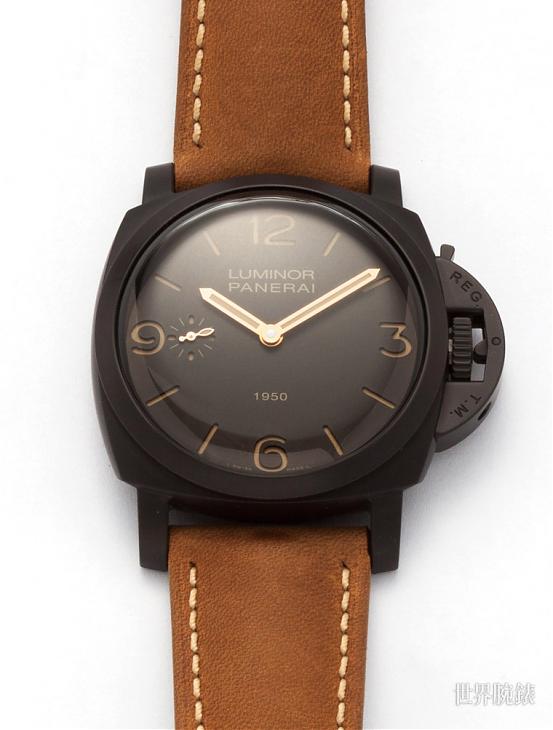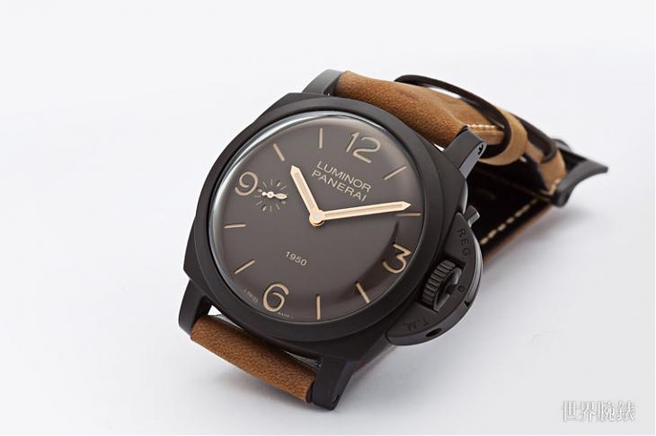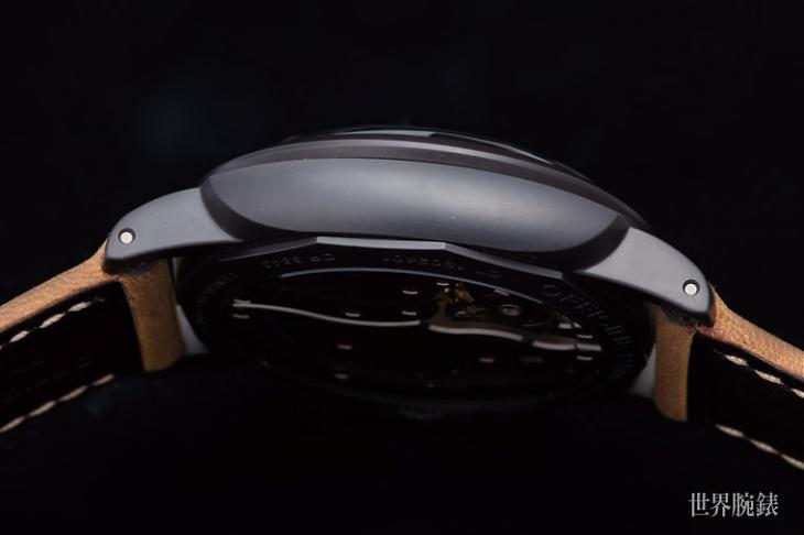 說來這只PAM00375是個出道過程有點特別的錶款,它當初在2011年就已經發表了,卻一直要等到好幾年後才正式上市,這也是它為什麼明明限量2000只卻到2018年都還買得到的理由之一(因為實際上開賣沒幾年)。這款使用的錶殼素材是一種名為Panerai Composite的特殊材質,具體來說是將鋁材施以陽極處理讓它「陶瓷化」的製程;2011年差不多就是陶瓷材質剛要在製錶業普及的頭幾年,當時各家品牌還在摸索這種素材(以及其他相關材質)的可能性,而沛納海的Composite也可以說是其中之一。