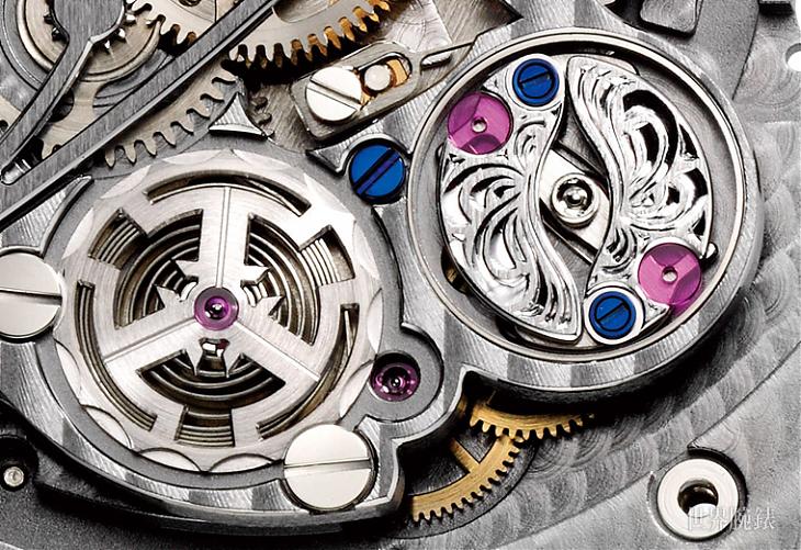 為了寓意三問功能的優美旋律,積家設計總監Janek Deleskiewicz及其團隊特地將傳統鏤空面盤上的機芯錶橋設計為波浪形,十分別緻。