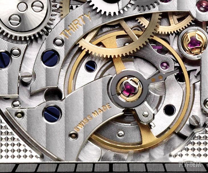 報時裝置方面,積家採用雙軸心音錘設計,搭配特殊合金材質製作的音簧,彼此接觸面更大,可提高敲擊時的音量清晰度。