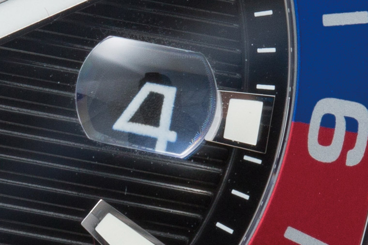 ▲Aquaracer還有一個特徵就是日期窗上的放大鏡,放大鏡的尺寸不大,差不多剛好框住日期視窗。一般玩家對日期放大鏡的感受很兩極,關於它的機能性也有各種看法。