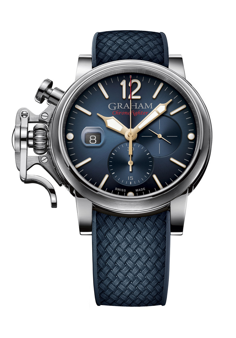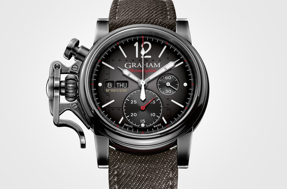 加入飛機元素的Chronofighter Vintage Aircraft,以1940年代的軍用飛機夾板為靈感,將其化為面盤形貌。彷彿鐵板拼接、再以鉚釘固定的面盤,搭配漸層的槍鋼色電鍍塗層,看來英勇結實。懷舊又張揚的樣貌,就像為一杯基酒加倍,酒精濃度更高,滋味更強烈的經典調酒。品牌同步推出透明底蓋版,另有底蓋鐫刻1940年代Halifax轟炸機圖騰的特別版。皆限量250只