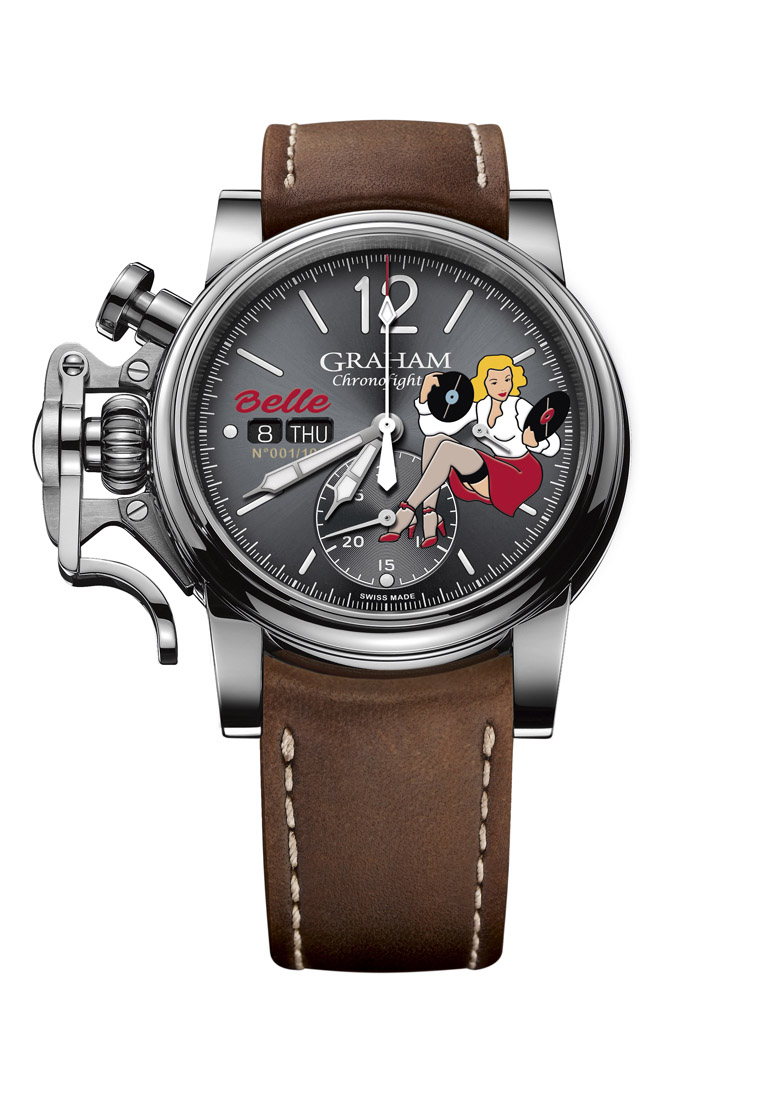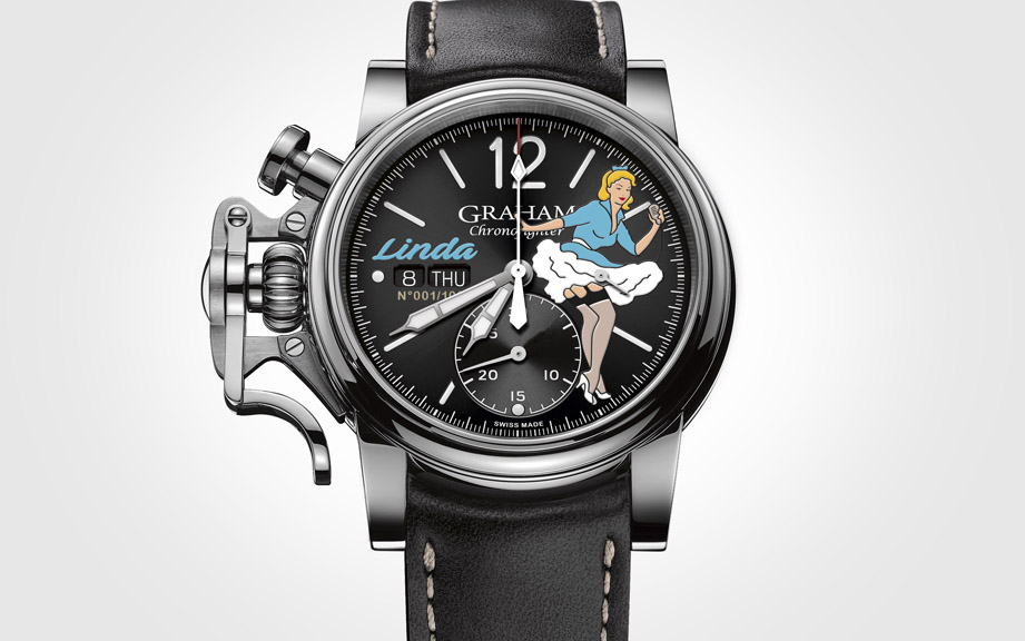 同樣結合了飛行元素,但Chronofighter Vintage Nose Art則是以戰爭時期,空軍飛行員塗繪於機鼻用以辨識敵我、作為幸運符,並逐漸形成某種次文化般存在的機鼻藝術為依據,在面盤右半部帶有1940年代漫畫風味,風情萬種的性感女性圖案。2018年格林漢以音樂為主題,推出多款不同圖案。包括彈吉他的Lucia、跳康康舞的Chloe、放黑膠唱片的Belle、舞場女王的Linda,各有風采,也讓人看見格林漢絕不保守的一面。就如同在威士忌中加可樂,在厚重之中加入對比的甜,帶來迷人的表情。