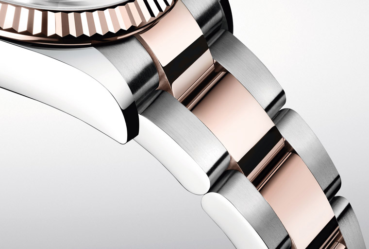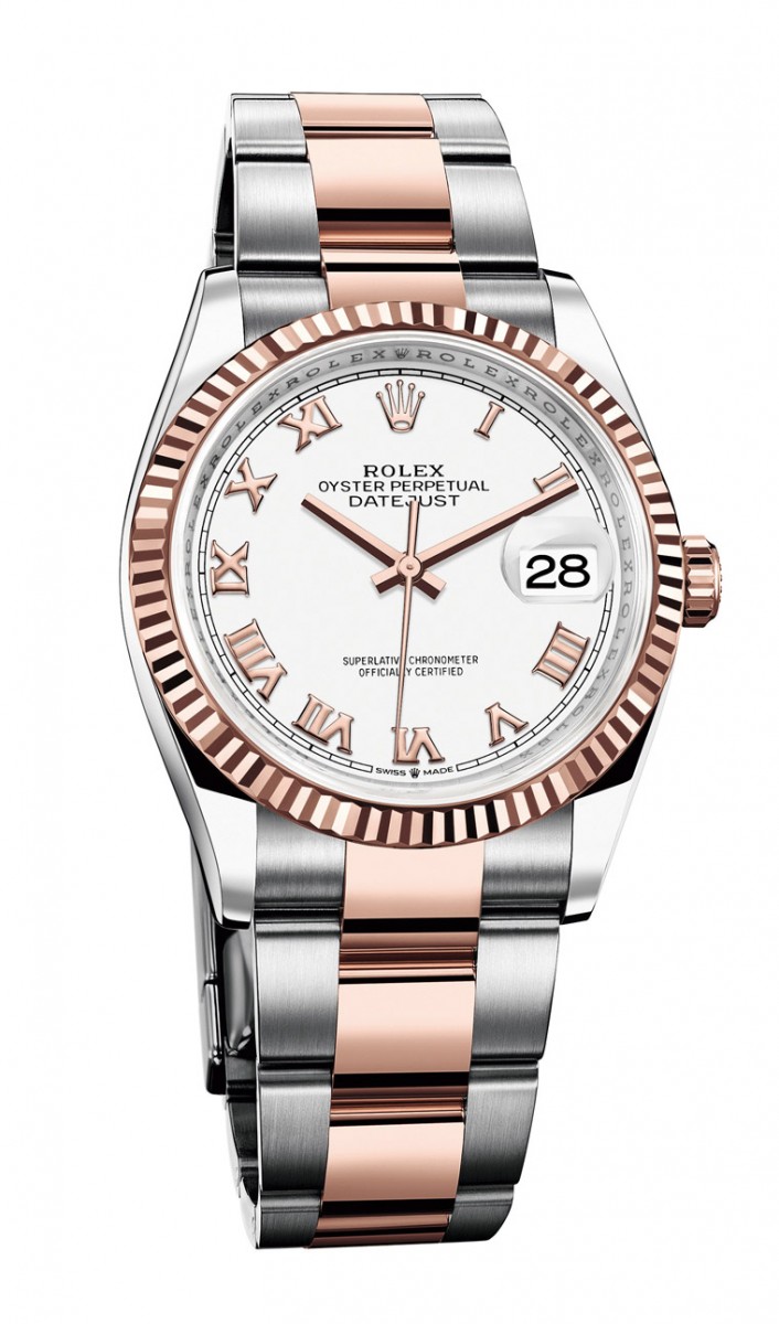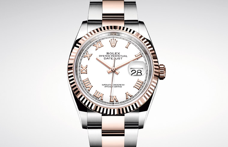 18 ct永恒玫瑰金、不鏽鋼材質/3235自動上鍊機芯/時、分、秒、日期顯示/藍寶石水晶鏡面/防水100米/錶徑36mm/參考價:NT$ 362,000