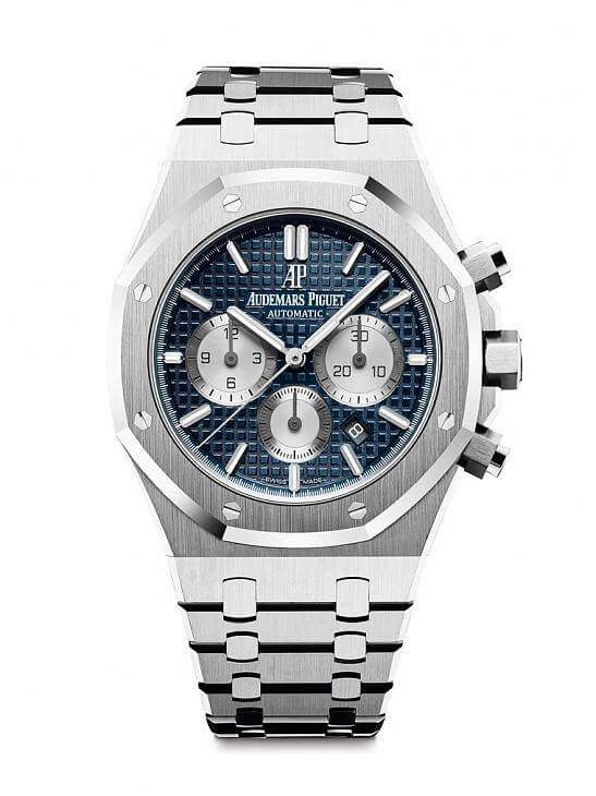 其實2008年愛彼皇家橡樹計時碼錶的Two Tone雙色設計就已經出現過,後來2015年愛彼女皇盃限量款也曾有過雙色,而這次的豐富配色更讓喜歡AP的人難以抉擇,以不鏽鋼材質來說,因為採用Two Tone雙色設計,所以藍面主面盤搭配三眼銀質錶盤、黑面主面盤搭配三眼白色錶盤,以及很時尚的白面主面盤搭配三眼黑錶盤(暱稱熊貓眼面盤),在市場上都算是蠻炙手可熱的搭配。仔細欣賞這幾款的面盤,面盤皆保有經典的”Grande Tapisserie”格狀飾紋,並在四~五點鐘位置設有一小日期窗,考慮到這獨特的雙色設計可是愛彼至少事隔十年才又再度推出的量產款,實在是頗有吸引力!