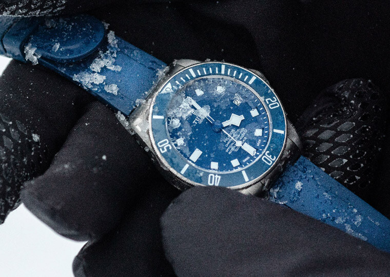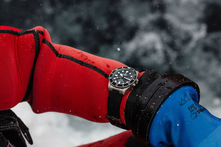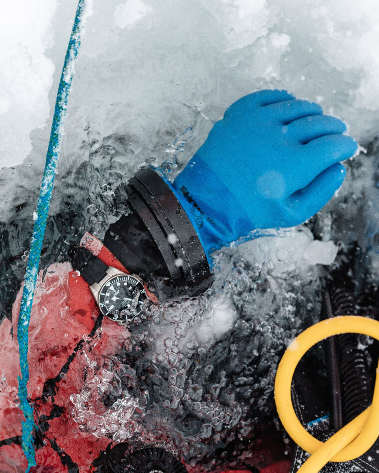 而從最近帝舵與法國自由潛水冠軍摩根·波齊斯(Morgan Bourc'his)合作的案例中,我們又再次見識到了Pelagos的耐操好用真的不是說說而已,因為Bourc'his在前不久的活動中,他完全沒有裝配任何的的潛水輔助設備,就戴了一只帝舵Pelagos便往阿爾卑斯偏遠山地極寒的冰湖中鑽去。自由潛水原本就被認為是既原始卻又挑戰性十足的項目,在一般的海裡自由潛水已經夠瘋狂了,然而Bourc'his潛的可是冰湖,代表環境更惡劣、溫度也更低,最終他順利完成了自由潛水任務,手上佩戴的Pelagos手錶也相安無事,甚至在Bourc'his的潛水過程扮演了重要的輔助角色,透過這次的冰下探潛任務,讓人對Pelagos這款手錶又更有信心了,如果戴著去結冰的湖裡自由潛水都沒問題,那平常佩戴還需要擔心嗎?