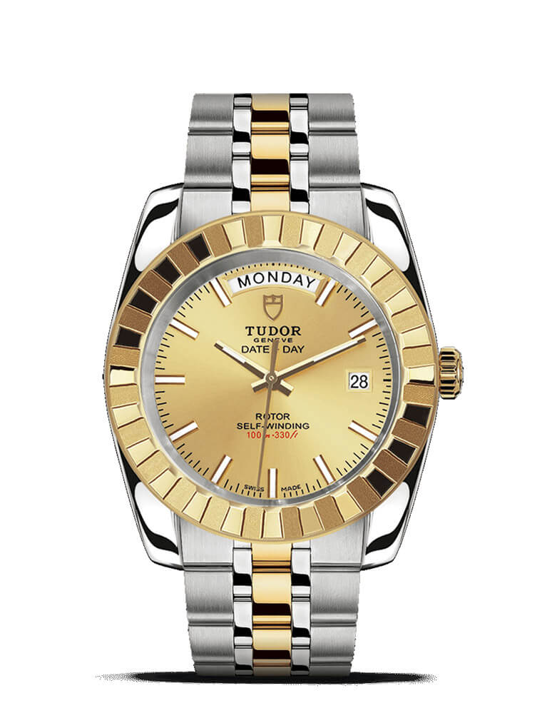 23013/不鏽鋼、黃金材質/自動上鍊機芯/時、分、秒、日期、星期顯示/藍寶石水晶鏡面/防水100米/錶徑41mm